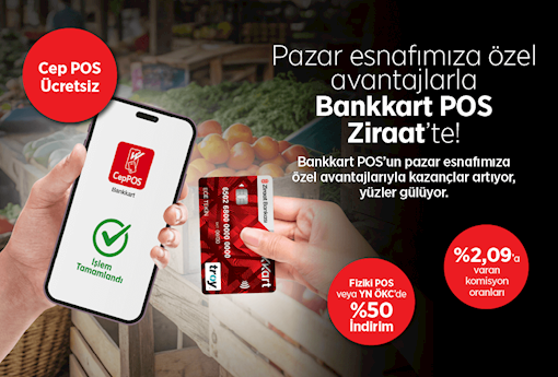Pazar esnafımıza yönelik Bankkart üye işyeri kampanyası kapsamında %2,09‘a varan komisyon oranı ile çalışma imkanı sunulacaktır.