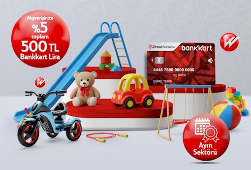 Bireysel Bankkart'ınız ile Nisan ayı içerisinde Oyun parkları ve Oyuncak sektöründeki üye işyerlerimizden yapacağınız 2.000 TL ve üzeri harcamalarınız ile %5 (tek seferde en fazla 250 TL), toplam 500 TL Bankkart Lira kazanabilirsiniz.